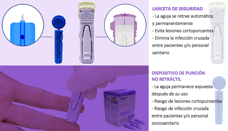 Las lancetas de seguridad disponibles son las Unistik 3: