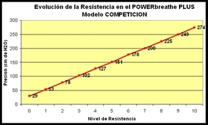 niveles diferenciados que van desde 29 cm2 de H2O como valor mínimo hasta 274 cm2 de H2O como valor máximo; con el fin de afinar en la progresión de la resistencia, el aumento entre un nivel y otro no hay por qué realizarlo de una vez sino que admite varios pasos, con lo que en la práctica presenta múltiples niveles de resistencia elegibles. Suponen los niveles más elevados de resistencia dentro de los POWERbreathe Pink Edition, denominándose también "Heavy Resistance".