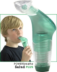 En la práctica se recomienda elegir la versión que mejor se adapte a nuestras condiciones y comenzar el entrenamiento con el nivel de resistencia más bajo posible del POWERbreathe. Se realizan 30 inspiraciones profundas y seguidas; si el aparato apenas ofrece resistencia a la inspiración y no nos cuesta nada completar las 30 inspiraciones, para la próxima sesión (se aconseja realizar diariamente 2 sesiones con 30 inspiraciones en cada sesión) se aumenta ligeramente la resistencia del POWERbreathe. Si una vez aumentada ligeramente la resistencia, en la segunda sesión completamos las 30 inspiraciones sin apenas esfuerzo, ello significa que debemos seguir aumentando la resistencia para la próxima sesión. Se continua con este proceso de aumento de la resistencia, hasta que lleguemos a un nivel en el que se completan las 30 inspiraciones, pero las últimas inspiraciones suponen un esfuerzo significativo sin llegar a la fatiga. Este será el nivel de intensidad adecuado para nuestras condiciones y será el nivel en el que debemos seguir entrenando la respiración con el POWERbreathe. Al cabo de unos días de entrenar en ese nivel de resistencia notaremos que cada vez nos cuesta menos completar las 30 repeticiones y será el momento de aumentar ligeramente la resistencia.