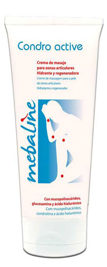 Condro Active es una crema hidratante y regeneradora de la piel de las zonas articulares, que penetrando consigue alcanzar el nivel articular y permitir de esta forma la actuación de sus principios activos en el cartílago articular; su uso prolongado en el tiempo pretende una regeneración del cartílago dañado. Sus ingredientes combinados consiguen una mayor efectividad.